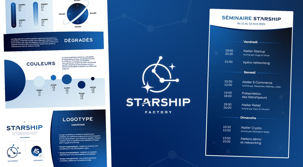 Du logo aux déclinaisons, en passant par la charte graphique et les supports de communication, chaque projet est pensé pour être cohérent, lisible et durable.
